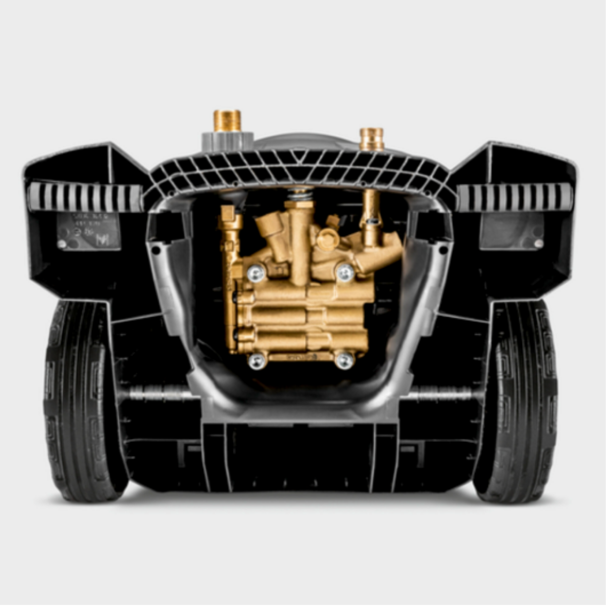 La robusta bomba axial de 3 pistones con culata de latón aumenta el rendimiento de limpieza y la eficiencia energética un 20 por ciento. El bien pensado concepto del HD 7/13-4 M incorpora además diversas opciones para el almacenamiento y el transporte seguro de los accesorios, así como un diseño con mantenimiento muy sencillo.