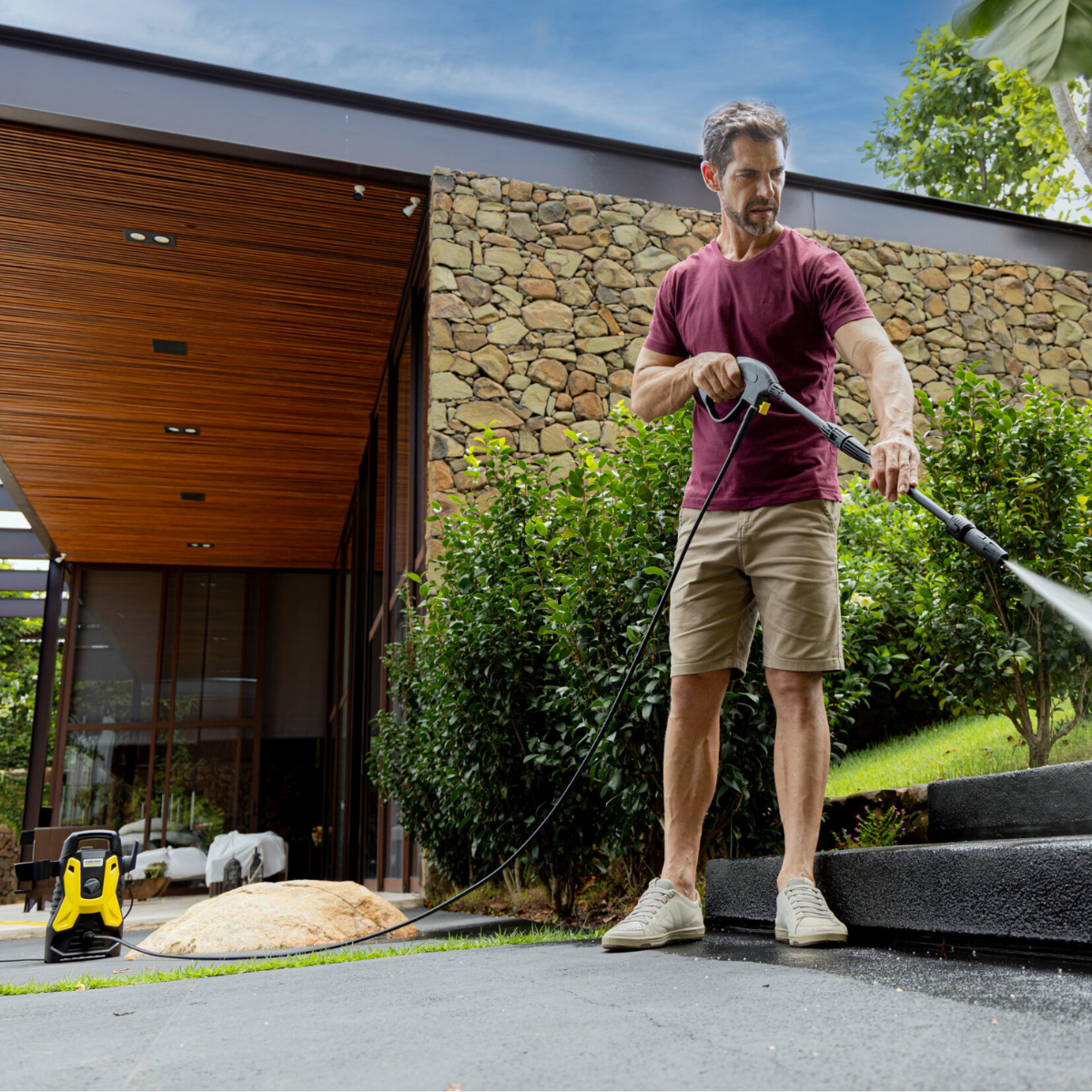 La hidrolavadora Kärcher Practica Black, con 1500 psi de presión, ayuda a eliminar la suciedad más difícil de tu bicicleta, coche, casa, jardín, garaje y más. Esta hidrolavadora incluye una lanza de chorro recto ajustable que se adapta al tipo de limpieza requerida y un aplicador de detergente que simplifica aún más la eliminación de la suciedad. Todo esto mientras ahorras tiempo y agua en comparación con una manguera de jardín convencional.